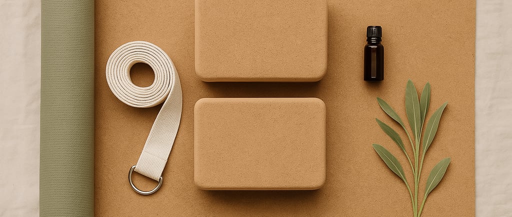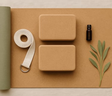 Um dich bei der Praxis nicht eingeschränkt zu fühlen, ist bequeme, flexible Kleidung wichtig. Achte auf Stoffe, die atmungsaktiv und nachhaltig sind, wie Bio-Baumwolle oder recycelte Materialien.Yoga-Blöcke und Gurt für mehr Unterstützung